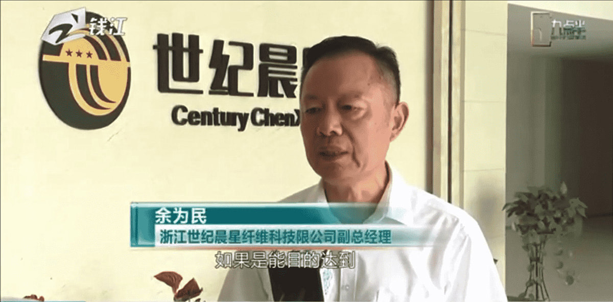 Yu Weimin, viseadministrerende direktør i Zhejiang Century ChenXing Fiber Technology Co., Ltd., svarer på journalisters spørsmål