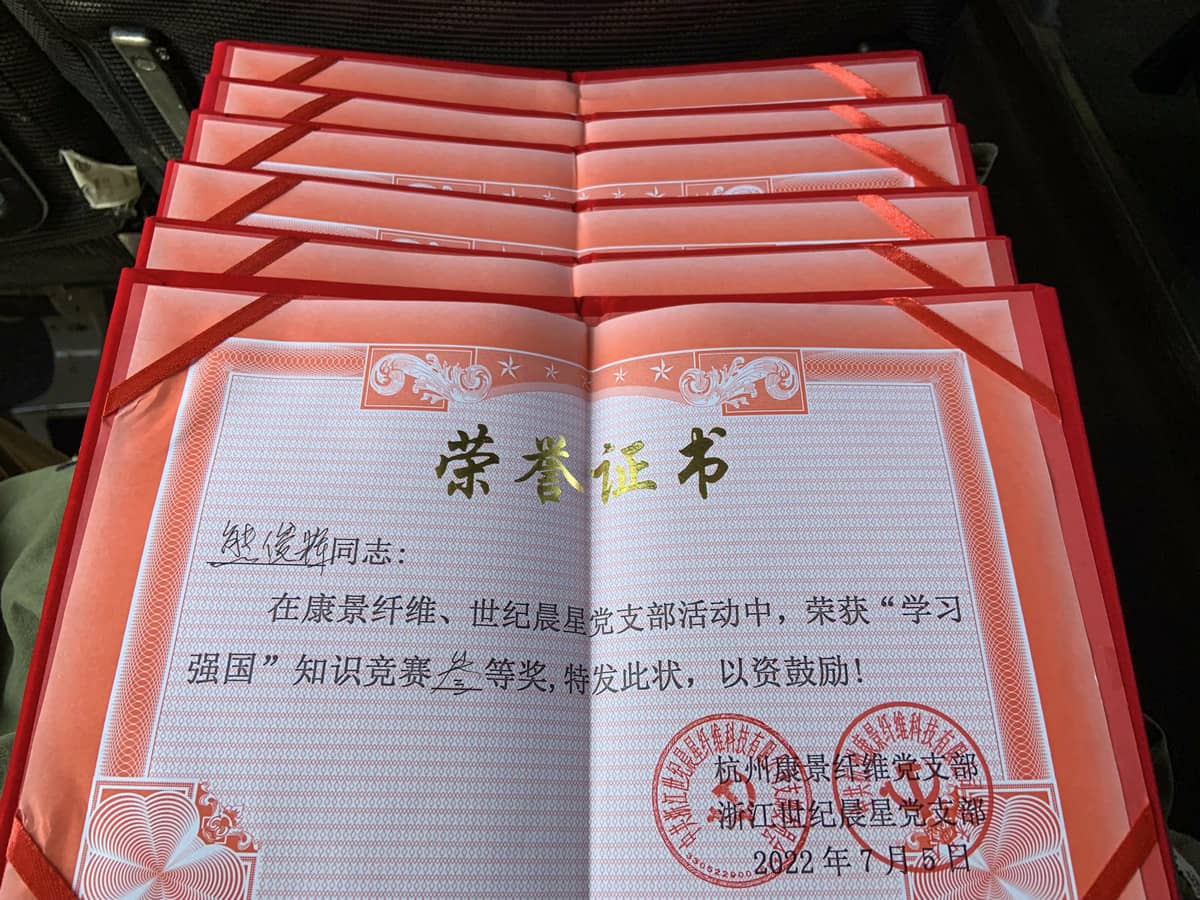Den 5. juli dro Party Branch til Zhejiang Century Morningstar Fiber Technology Co., Ltd. og Party Branch of Hangzhou Kangjing Fiber til Shangrao, Jiangxi-provinsen for å besøke minnestedet til Shangrao Concentration Camp, et produkt av den sørlige Anhui-hendelsen. . På veien ble det gjennomført en liten felleskonkurranse for å lære kunnskapen om et mektig land på bussen. Tildelingen av hedersbevis og bonuser har som mål å styrke teoretisk kunnskap og forbedre kvaliteten på partimedlemmene!